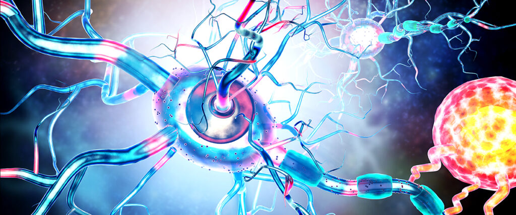 3d illustration of nerve cells. Affected Human nervous system, concept for Neurological Diseases, tumors and brain surgery.
